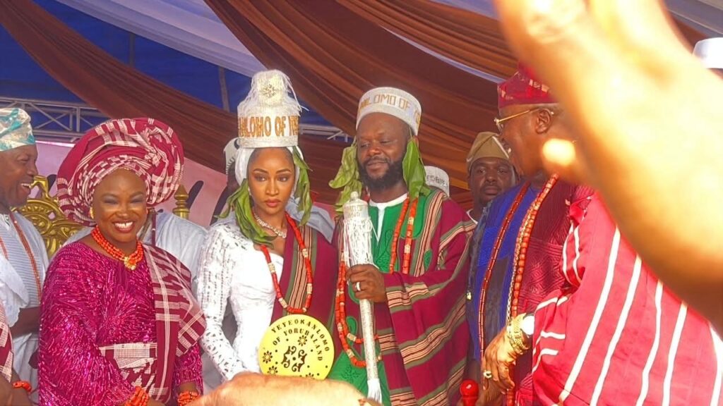 Seyi Tinubu has been formally installed as the Okanlomo of Yorubaland by the Alaafin of Oyo, in a colourful traditional ceremony that blended royal rites, culture, and symbolism. Photos from the event show moments of homage, prayers, and traditional exchanges as the honour was conferred.