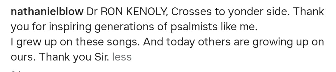 Beyond his musical achievements, Kenoly was a dedicated worship pastor and mentor. He founded the Praise Center Church in California, where he nurtured emerging talent and emphasized the spiritual depth of worship. His teachings on worship as a lifestyle rather than just music have been widely adopted, shaping modern Christian worship practices.