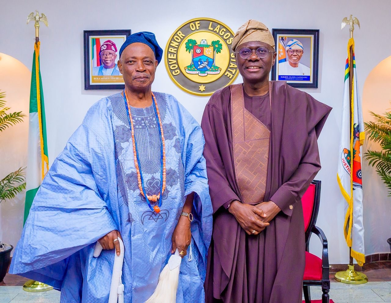 The Olubadan of Ibadanland, Rashidi Adewolu Ladoja, on Friday paid a courtesy visit to the Lagos State Governor, Babajide Sanwo-Olu, at Lagos House, Marina.