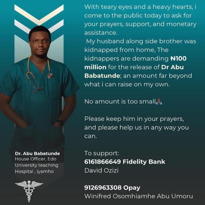 Dr. Tunde and his brother were kidnapped several months ago, with the abductors initially demanding a ransom of ₦100 million for their release. The case drew national attention after family members and friends appealed to the public for help to raise the funds, an appeal that quickly went viral across social media.