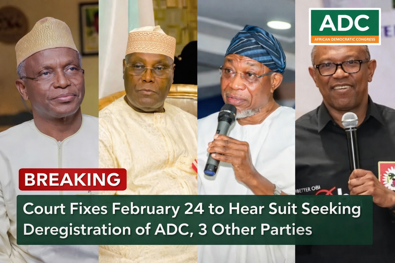 The Federal High Court in Abuja has fixed February 24 to commence hearing in a suit seeking the deregistration of the African Democratic Congress (ADC) and three other political parties ahead of the 2027 general elections.