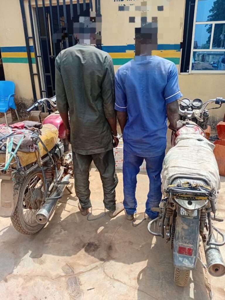 The suspects, identified as Isiaka Dare, 35, and Taiwo Ayodabo, 33, both from Tede, were apprehended following credible intelligence linking them to cross-border ammunition trafficking from the Republic of Benin into Nigeria through unauthorized routes.
